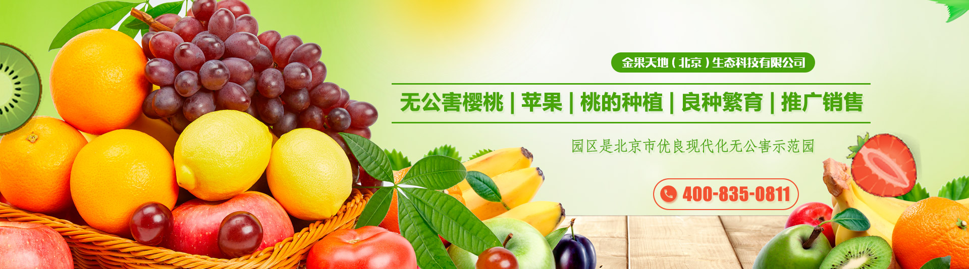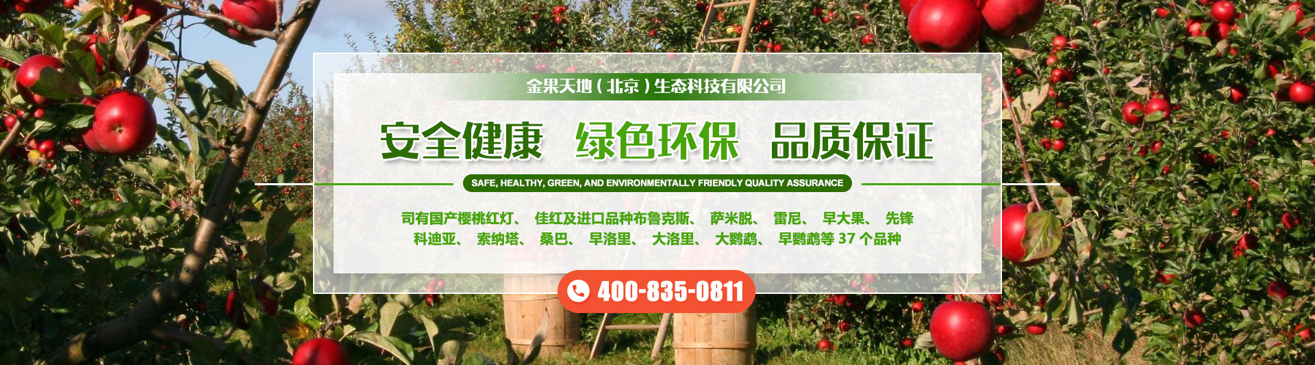 金果天地(北京)生态科技有限公司位于北京市通州区西集镇,下分四个生产区域分别为:上坡村种植生产区,以樱桃、苹果种植为主。曹刘各庄村种植区,以苹果、樱桃、桃树种植和休闲采摘的综合型产区。吕家湾村种植生产区,以苹果种植为主。王庄村育苗基地,以苗木繁育为主。公司主要从事无公害樱桃、苹果、桃的种植、良种繁育、推广销售。公司有国产樱桃红灯、佳红及进口品种布鲁克斯、萨米脱、雷尼、早大果、先锋、科迪亚、索纳塔、桑巴、早洛里、大洛里、大鹦鹉、早鹦鹉等37个品种。富士苹果、王林苹果、金粉苹果,油桃毛桃等。